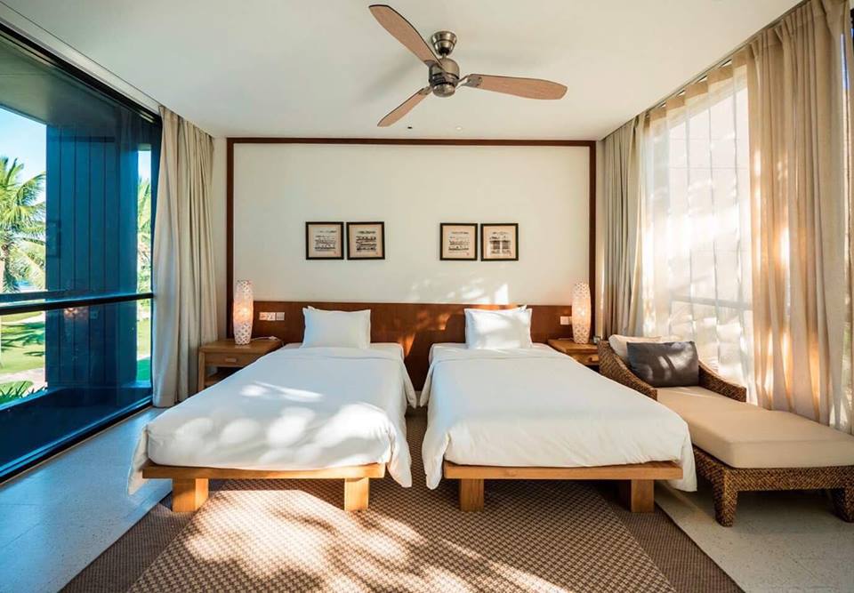 - Hệ thống 3 phòng ngủ: 1 phòng ngủ chính có giường cỡ King; 1 phòng ngủ có 2 giường đơn và 1 phòng ngủ khác với giường cỡ Queen. Tất cả phòng ngủ đều có nhà vệ sinh riêng trong mỗi phòng. Mỗi phòng đều có ban công riêng với tầm nhìn hướng biển, hướng vườn.