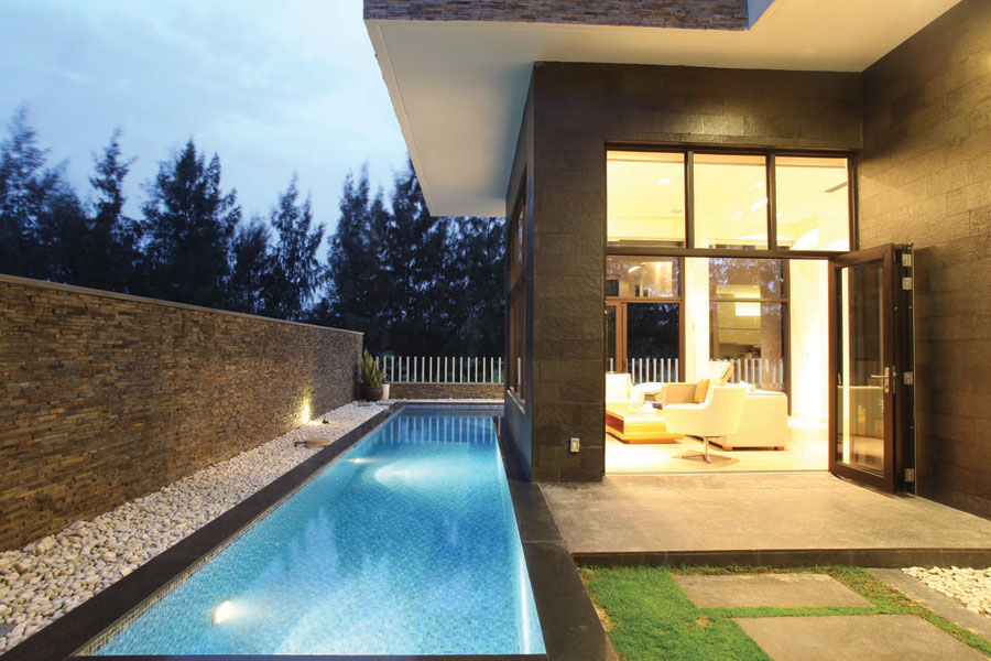 - Thiết kế: 2 tầng, 3 phòng ngủ, 3 phòng vệ sinh, 1 phòng khách, 1 phòng bếp, có nhà để xe riêng, có hồ bơi riêng, có sân vườn riêng, có không gian sinh hoạt chung tại tầng 2.