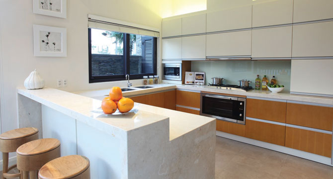 - Phòng bếp mang phong cách hiện đại. Có sức chứa khoảng 15 người.