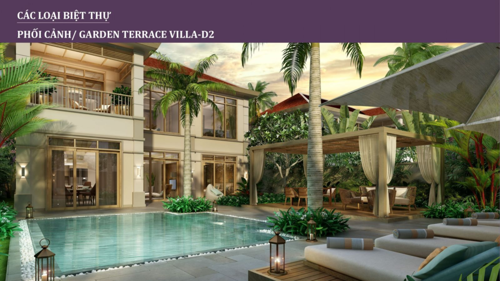 Được xây dựng phù hợp với nhu cầu sử dụng của đa phần khách hàng. Biệt thự 2 phòng ngủ  Garden Terrace Villa gồm 40 căn với diện tích từ 370m2 đến 514m2. Để lại nhiều ấn tượng với thiết kế trang nhã mang hơi thở đương đại. Biệt thự đáp ứng đầy đủ tiện nghi, mang đến không gian sống thoải mái và bình yên cho gia chủ.