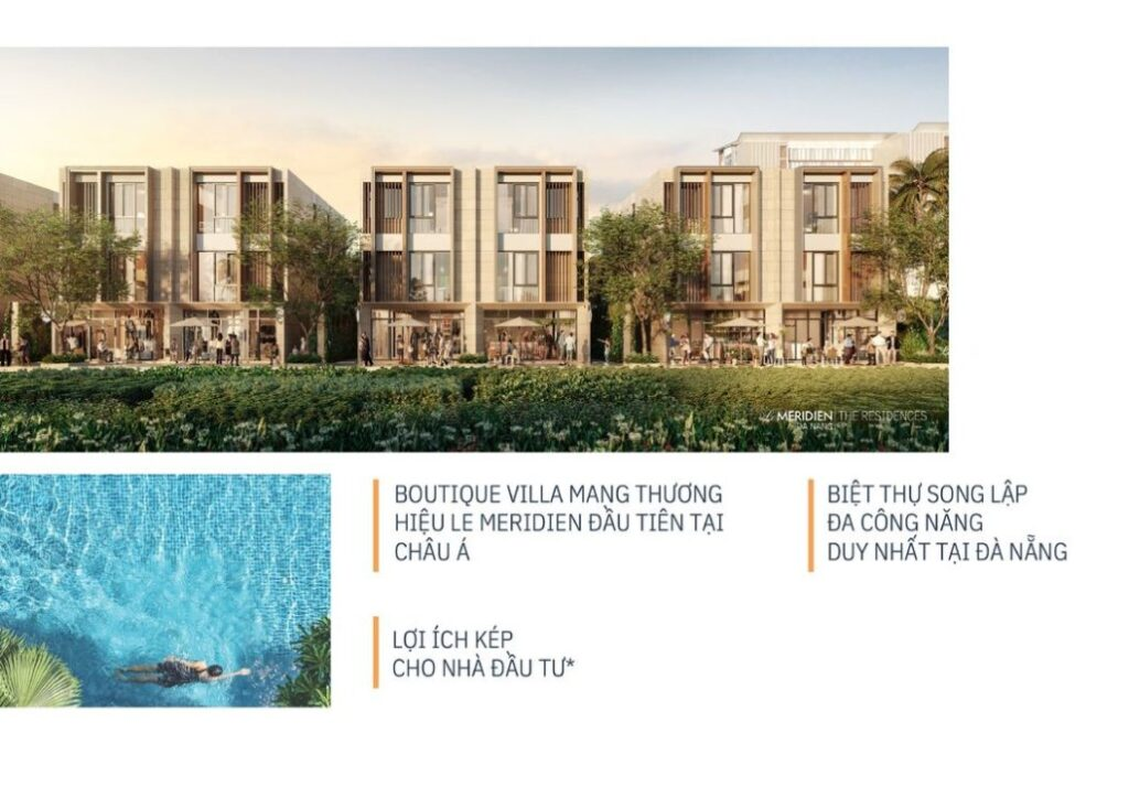 - Khu biệt thự Le Meridien Đà Nẵng có tổng diện tích 21.652,5 m2 gồm 12 căn shop villa, 51 biệt thự biển với diện tích đất khoảng từ 220 m2 đến 700 m2. Cụ thể có 6 căn biệt thự 4PN, 45 căn biệt thự 3PN, 12 căn biệt thự 2 phòng ngủ.