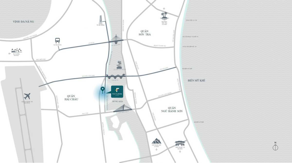 Từ The Filmore Đà Nẵng chỉ mất dưới 10 phút để đến Sân bay Quốc tế Đà Nẵng, trung tâm hành chính và bãi biển Mỹ Khê. Bên cạnh đó, dự án cũng liền kề với các biểu tượng du lịch, văn hóa số một như bến du thuyền sông Hàn, tượng Cá Chép Hóa Rồng, bảo tàng điêu khắc Chăm, TTTM Parkson, công viên Asia Park, sân vận động Quân khu 5,…