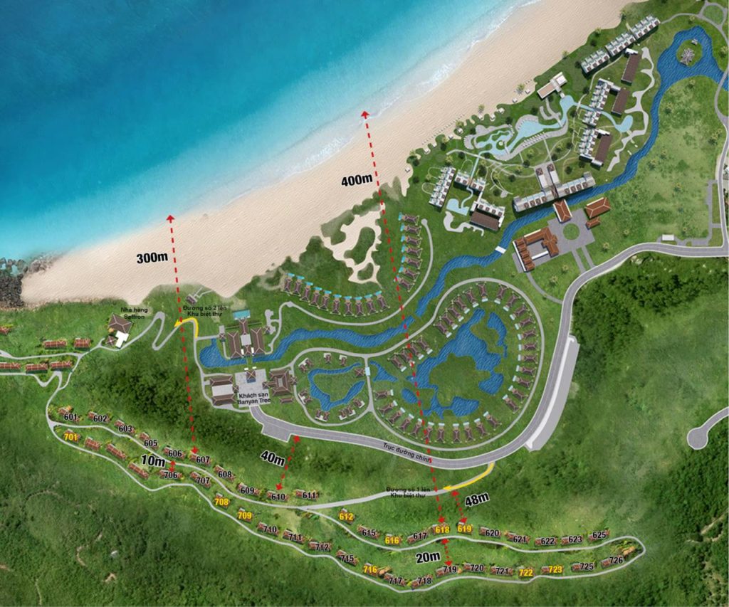 Trong toàn dự án lớn đó, 40 biệt thự biển mang thương hiệu Banyan Tree Residences là điểm nhấn nổi bật. Địa thế tựa núi – hướng biển, kiến trúc tinh tế giữa bức tranh tuyệt đẹp của thiên nhiên, nội thất hoà hợp tối ưu giữa bản sắc văn hoá và tiện nghi hiện đại, tạo nên một không gian sống sang trọng và đầy cảm xúc.